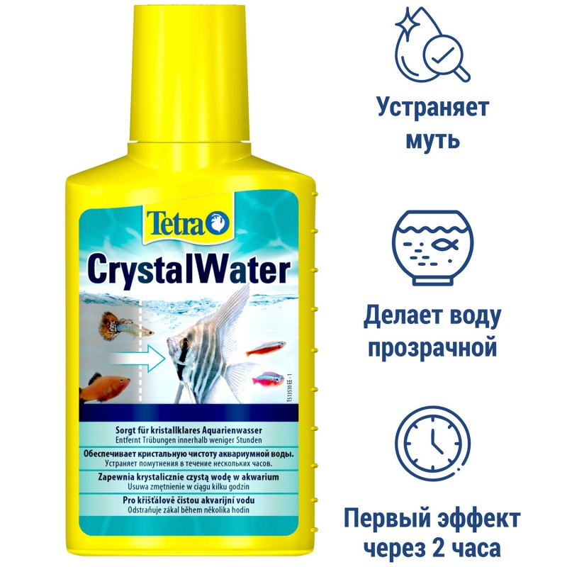 Средство Tetra CrystalWater устраняет помутнение аквариумной воды за считанные часы. Особая формула препарата способствует удалению любых частиц грязи. Первые результаты заметны по прошествии 2-3 часов. Кристальная чистота воды за 6-12 часов.