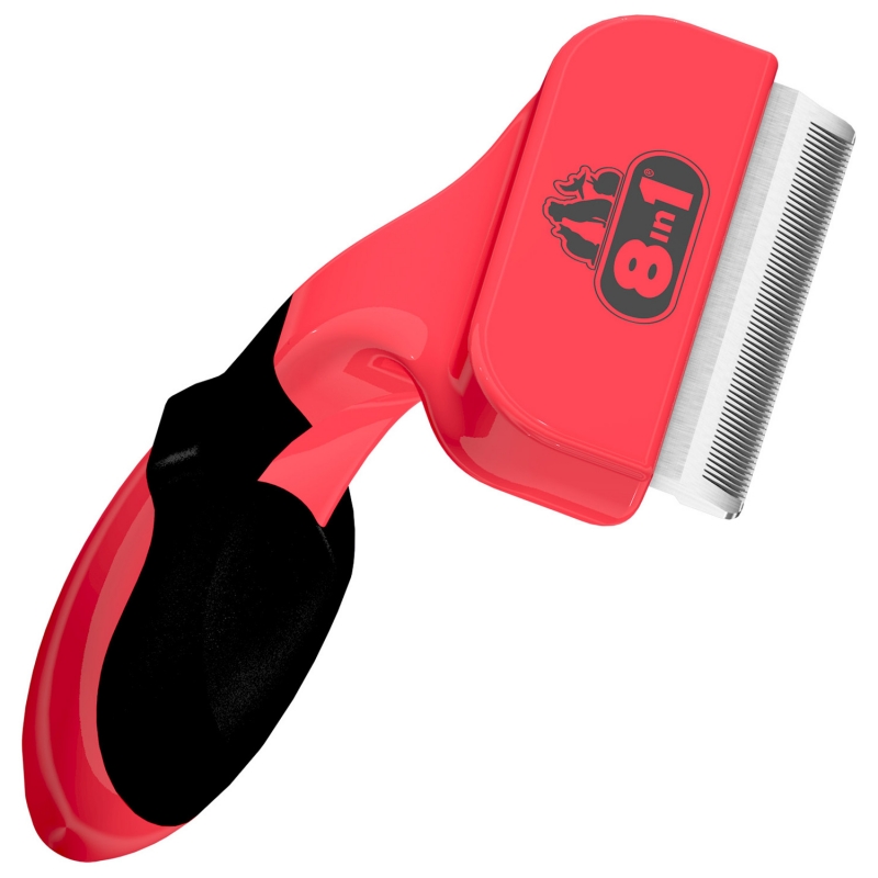 Дешеддер 8in1 Perfect Coat M для крупных собак. Лезвие дешеддера захватывает и вытаскивает слабо прикрепленные волоски подшерстка еще до их выпадения, сокращая линьку собаки до 90%. Благодаря дешеддеру 8in1, вы забудете о выпавшей шерсти в доме, а ваш питомец будет выглядеть ухоженно. При правильном применении дешеддер 8in1 эффективен на всех животных, обладающих подшерстком, в независимости от длины шерсти. Инструкция: Вычёсывайте собаку, проводя дешеддером по направлению роста волос, проникая лезвием вглубь шерсти животного. Не задерживайтесь надолго в одной области. Дешеддер 8in1 следует использовать только на животных, обладающих подшерстком.
