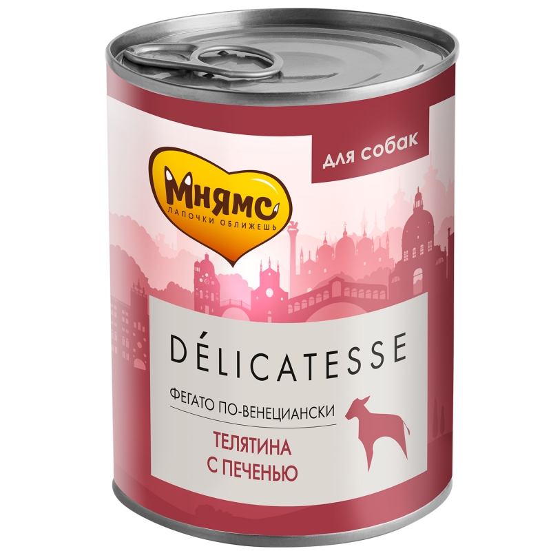 Полнорационный консервированный корм для собак "Фегато по-венециански". Паштет из телятины с печенью.