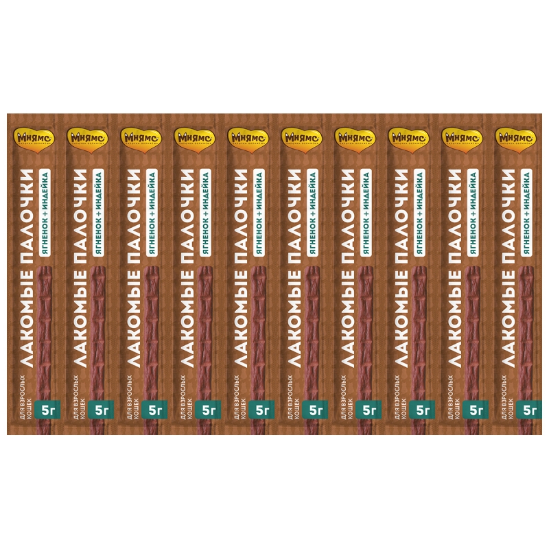 Лакомые палочки из индейки и ягненка - вкусный путь к сердцу вашей кошки. Лакомые палочки можно давать из рук, ломать и использовать для дрессировки, наполнять ими интерактивные игрушки или подмешивать в корм для улучшения вкусовой привлекательности. В составе палочек более 90% мяса. А также в составе нет злаков, глютена и ароматизаторов. Докажите свою любовь вместе с вкусными и полезными лакомыми палочками "Мнямс".