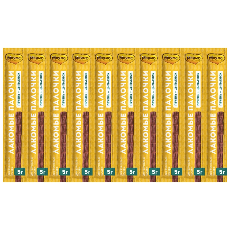 Лакомые палочки с цыпленком и печенью - вкусный путь к сердцу вашей кошки. Лакомые палочки можно давать из рук, ломать и использовать для дрессировки, наполнять ими интерактивные игрушки или подмешивать в корм для улучшения вкусовой привлекательности. В составе палочек более 90% мяса. А также в составе нет злаков, глютена и ароматизаторов. Докажите свою любовь вместе с вкусными и полезными лакомыми палочками "Мнямс".