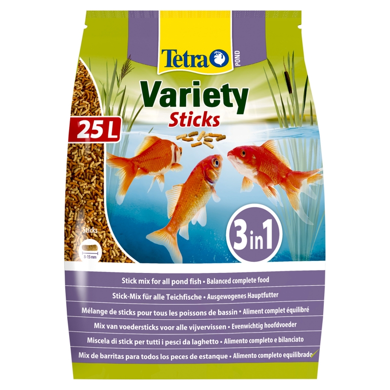 Tetra Pond Variety Sticks – Смесь из трех различных видов палочек обеспечит полноценное и разнообразное кормление для всех прудовых рыб. Содержит все важные питательные вещества, витамины и микроэлементы. Усиление окраски благодаря высококачественным биологическим усилителям цвета. Легко усваивается благодаря высокому содержанию пшеничных зерен, богат балластными веществами, обеспечивает повышенную сопротивляемость организма благодаря витамину C. Существенно меньшее загрязнение воды благодаря биологической доступности питательных веществ. идеально подходит для ежедневного кормления всех прудовых рыб. Высококачественный пластиковый пакет защищает корм от вредного воздействия солнечного света, воздуха и влажности. Это означает, что основные вещества корма защищены и корм остается свежим, обеспечивая самое лучшее кормление.