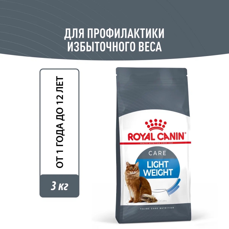 Оптимальные физическая кондиция и мышечная масса – факторы, во многом определяющие состояние здоровья кошек. Точно сбалансированная формула ROYAL CANIN® Light Weight Care поможет поддерживать оптимальный вес животного.
