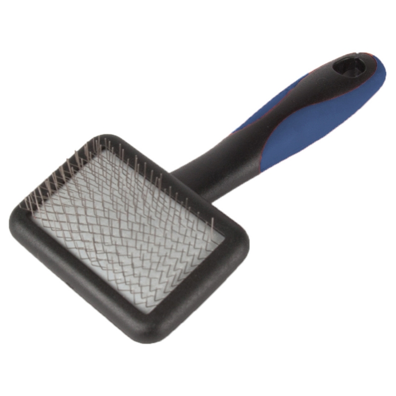 Корпус сликера сделан полностью из пластмассы, мягкие шпильки прочно укреплены в мягкую резиновую подушку. Сликер имеет удобную ручку с нескользящим покрытием.
