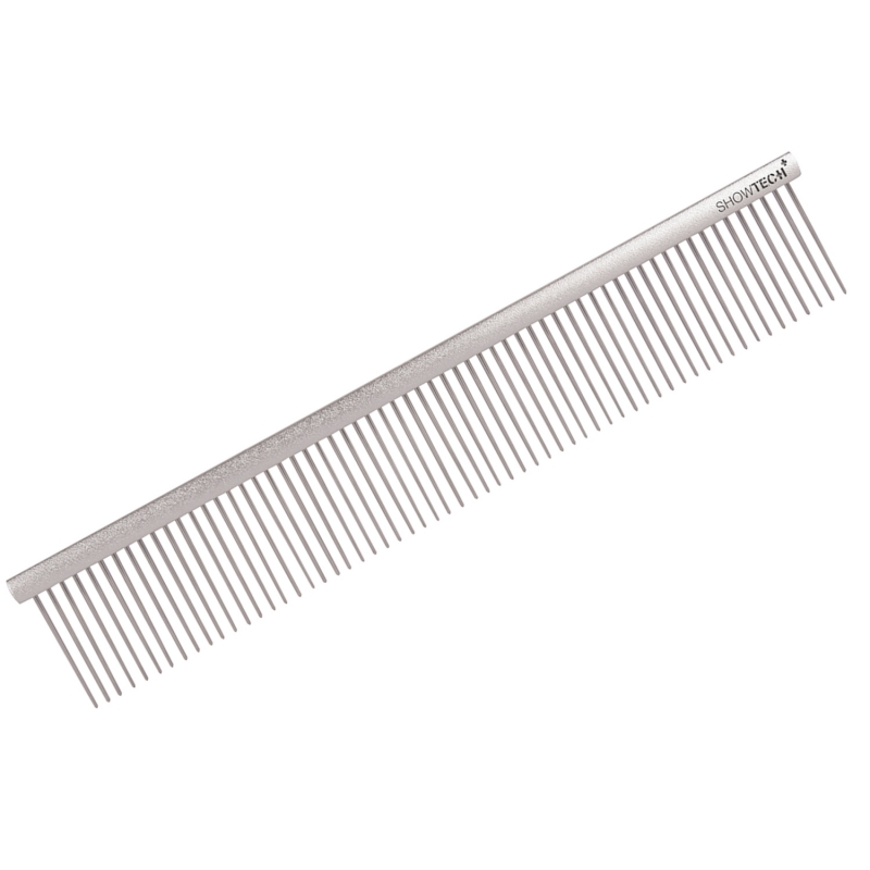 SHOW TECH + Professional Гребень профессиональный средний 25 см. Суперлегкий профессиональный гребень из алюминия с полированными зубьями из нержавеющей стали высотой 36 мм. Прекрасно расчесывает, не повреждает кожу и шерсть животных. Идеальный инструмент для грумеров и заводчиков.