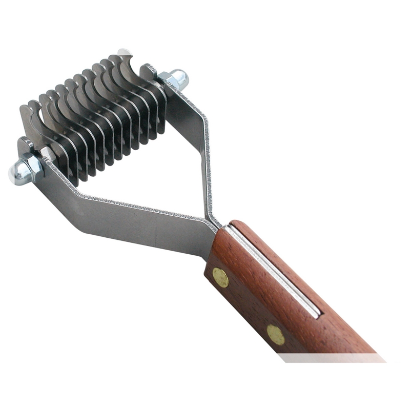 Инновационный инструмент предназначен для прореживания шерсти, а так же для удаления отмершего остевого волоса и подшерстка у собак с высокой плотностью шерсти и подшерстка.