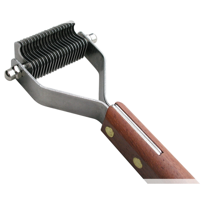 Инновационный инструмент предназначен для прореживания шерсти, а так же для удаления отмершего остевого волоса и подшерстка у собак с небольшой плотности шерсти и подшерстка.