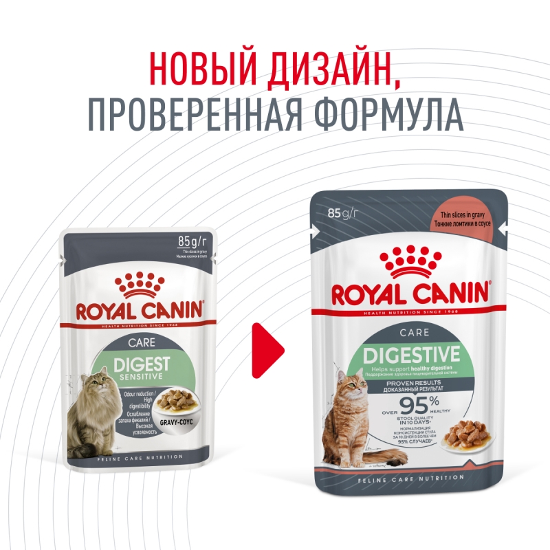 ROYAL CANIN® DIGESTIVE CARE - точно сбалансированная формула, поддерживающая баланс флоры кишечника и способствующая нормализации стула.