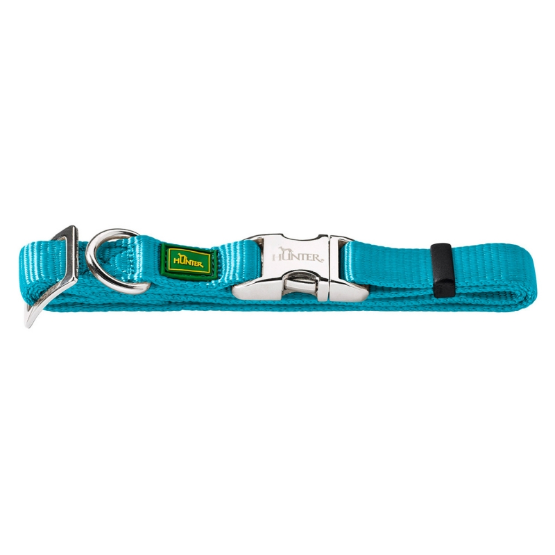 Прочный нейлоновый ошейник Hunter (Хантер) (ХАНТЕР) ALU-Strong L (АЛУ Стронг) для собак крупных пород насыщенного бирюзового цвета оснащен надежной металлической застежкой и хромированной фурнитурой, что делает его носким и стойким к внешним воздействиям. С помощью бегунка можно регулировать и фиксировать размер ошейника, что особенно удобно для щенков, обхват шеи которых сильно увеличивается в процессе роста. Ошейник подходит для собак с обхватом шеи 45-65 см, ширина ошейника - 25 мм.