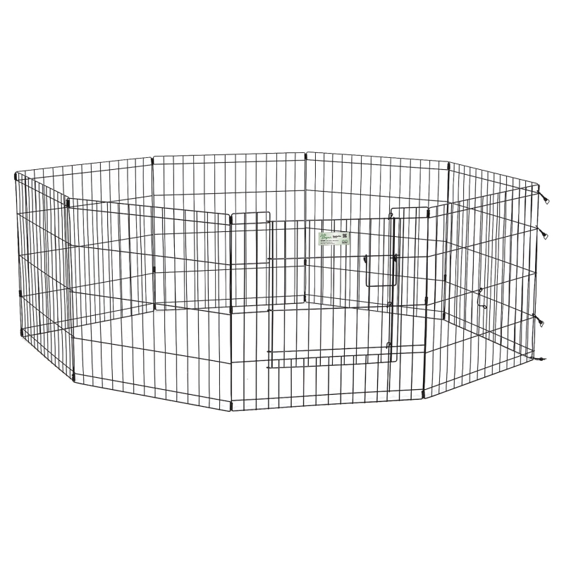 Вольер для животных 8 панелей с дверью для использования в помещении и на улице. Запатентованная дверная система MAXLock повышает безопасность, предоставляя множество точек блокировки по периметру двери. Эргономичная ручка-замок позволяет легко и удобно управлять дверью одним движением, без сгибания коленей. Прочное черное покрытие вольера Electro-Coat обеспечивает долговечную защиту. Вольер легко складывается для удобного хранения и транспортировки, легко собирается, не требуется никаких инструментов или дополнительных деталей. В комплект включены угловые усилители, которые добавляют вес и поддерживают конфигурацию ограждения, они так же могут быть использованы для защиты напольного покрытия, и крепежи, которыми оснащена функциональная безопасная каркасная дверца. Ограниченная площадь1,5 квадратных метра. Возможные конфигурации вольера: квадрат, прямоугольник, восьмиугольник. Вес 7,8 кг (8,4 кг с упаковкой). Размер одной панели 61х61h см.