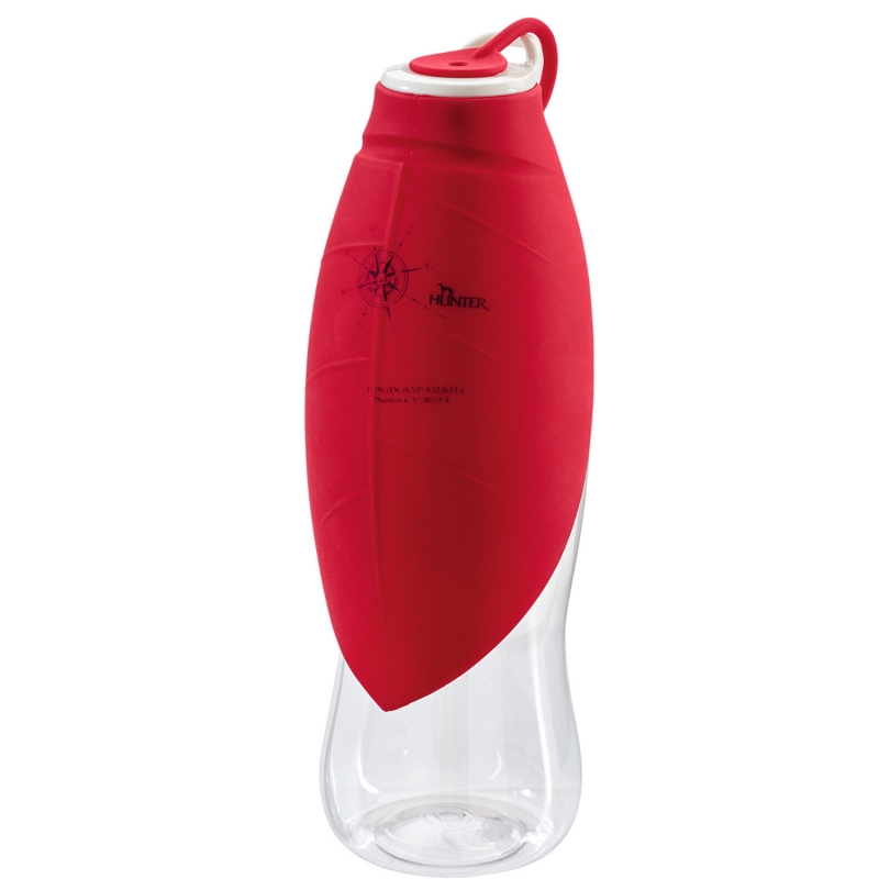 Походная поилка для собак изготовлена из пищевого пластика и силиконовой чаши.