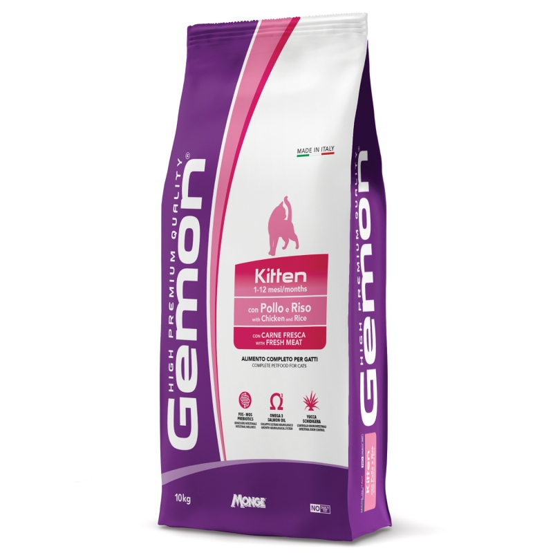 Сухой корм с курицей и рисом Gemon Cat (Джемон) для котят в возрасте до 12 месяцев в упаковке 10 кг.