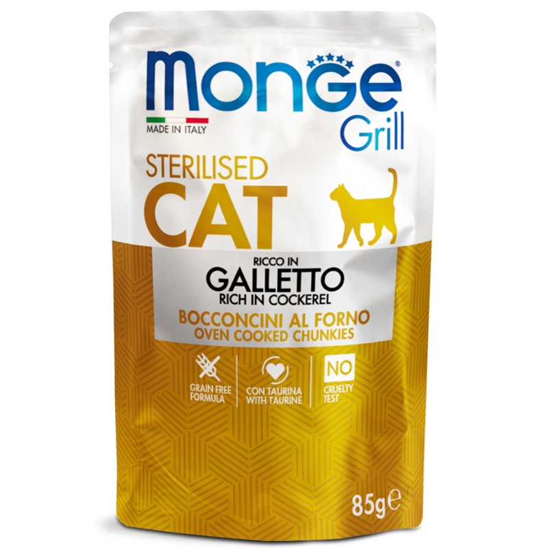 Monge (Монж) Cat Grill полнорационные беззерновые паучи с итальянской курицей для стерилизованных кошек и кастрированных котов 85 г.
