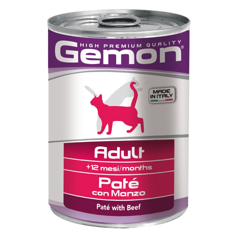 Влажный консервированный корм с говядиной для взрослых кошек Gemon (Джемон) Cat в консервах 400 г.