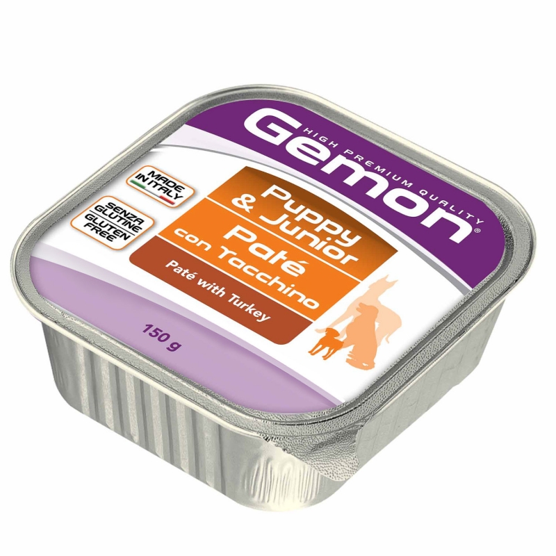 Влажный консервированный корм с индейкой Gemon (Джемон) Dog для щенков в ламистерах 150г.