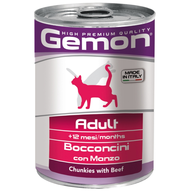 Влажный консервированный корм с говядиной для взрослых кошек Gemon (Джемон) Cat Pouch в консервах 415 г.