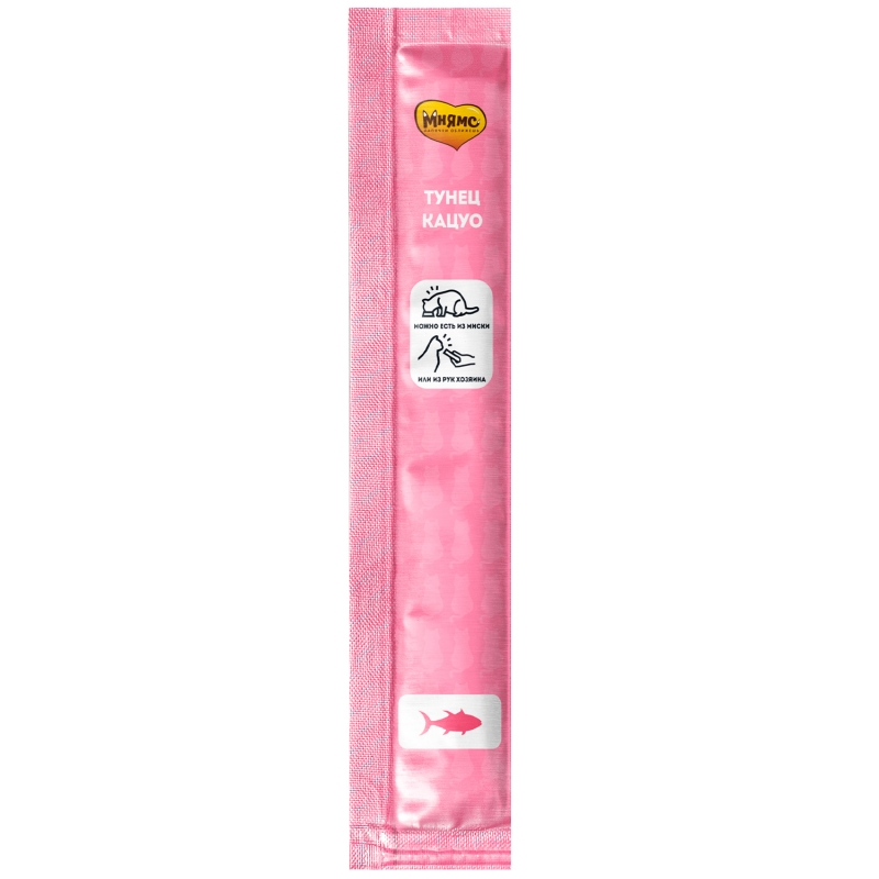 Крем-лакомство с тунцом Кацуо Тёмно-красное мясо деликатесного малого тунца Крем-лакомство «Мнямс» с тунцом – это изысканное угощение с нежнейшей кремовой консистенцией. Утонченный вкус приводит кошек в восторг, а яркие эмоции довольных любимцев при кормлении с рук дарят хозяевам ощущение полного счастья. Подается как порционное угощение, или добавляется в виде аппетитного соуса к основному рациону для обогащения вкуса привычных блюд. Изготовлено по новейшей японской технологии и соответствует мировым стандартам качества.