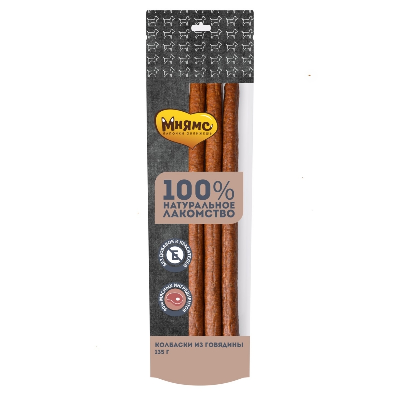 Колбаски из говядины– это вкусное угощение и отличный способ поощрить питомца при дрессировке. Имеют мягкую консистенцию, идеально подходят в качестве ежедневного угощения для собак всех пород и возрастов.
