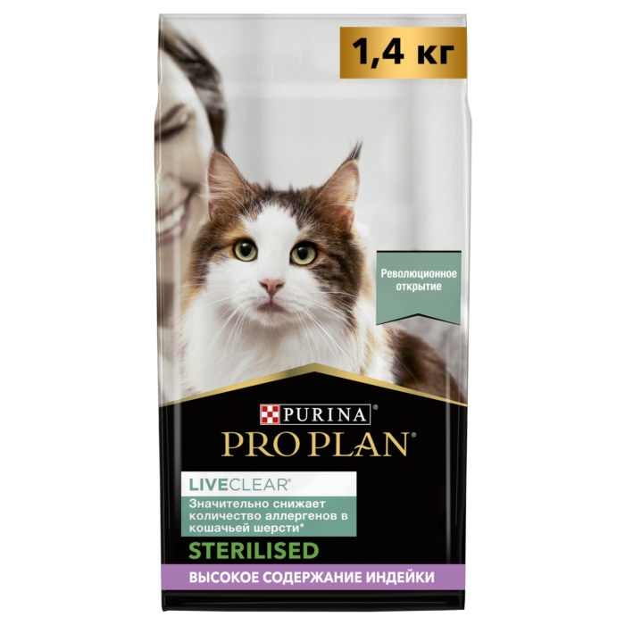 Эксперты PRO PLAN создали специальные сухие корма LiveClear Sterilised. Этот сухой корм для кошек содержит белок, который нейтрализует аллерген в слюне и абсолютно безопасен для животного. Кроме того, корм для стерилизованных кошек поддерживает оптимальный вес питомца и помогает в профилактике мочекаменной болезни.