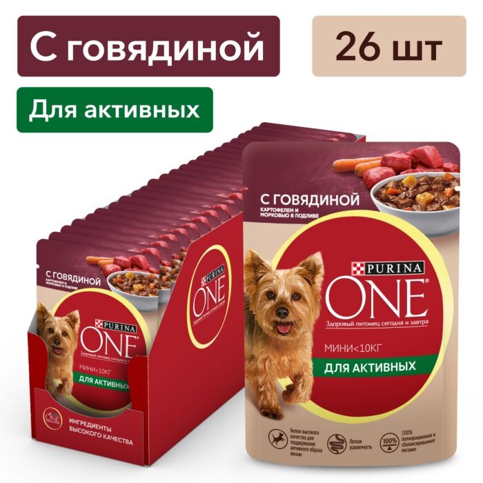 •Влажный корм для собак Purina One является полнорационным и содержит необходимые для здоровья микронутриенты.