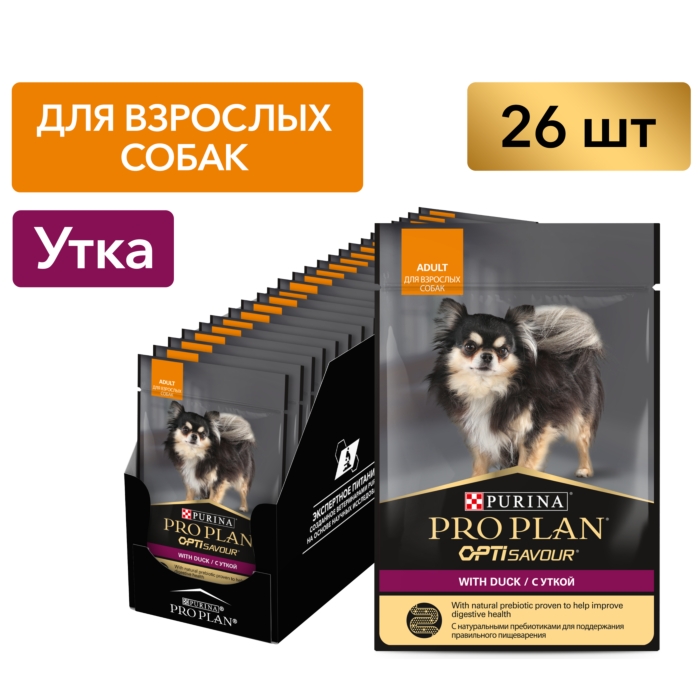 Разработанный нашими ветеринарными врачами и диетологами влажный корм для взрослых собак обеспечивает самое современное питание, которое оказывает долгосрочное влияние на здоровье собаки. Влажные корма PRO PLAN учитывают индивидуальные потребности собаки, обеспечивают высокую усвояемость питательных веществ, поддерживают естественную защиту питомца и здоровое пищеварение. Комбинируйте влажные и сухие корма PRO PLAN для разнообразия в питании вашего питомца и поддержания здорового водного баланса. •Влажный корм для собак PRO PLAN не содержит искусственных красителей •Разнообразие вкусов: попробуйте влажные корма PRO PLAN для взрослых собак с курицей, говядиной или уткой •Натуральными пребиотики в составе корма для поддержания правильного пищеварения.