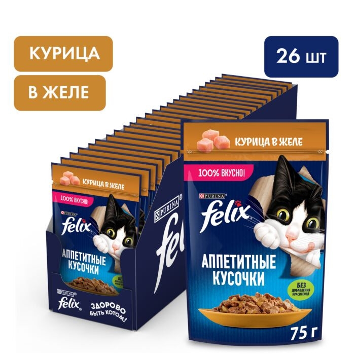 Эксперты Purina, разрабатывая влажные корма для домашних любимцев, создали корм для взрослых кошек Felix «Аппетитные кусочки» — специально для Вашего любителя вкуснятины. Влажный корм для кошек Felix Аппетитные кусочки — полнорационный, содержит все необходимое для здоровой активной долгой жизни.