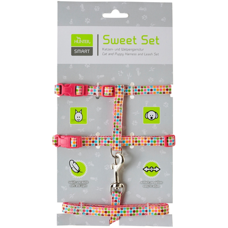 Шлейка Hunter Smart для кошек и собак Seventies нейлон, обхват шеи 18-28 см, обхват груди 23-38 см, розовая