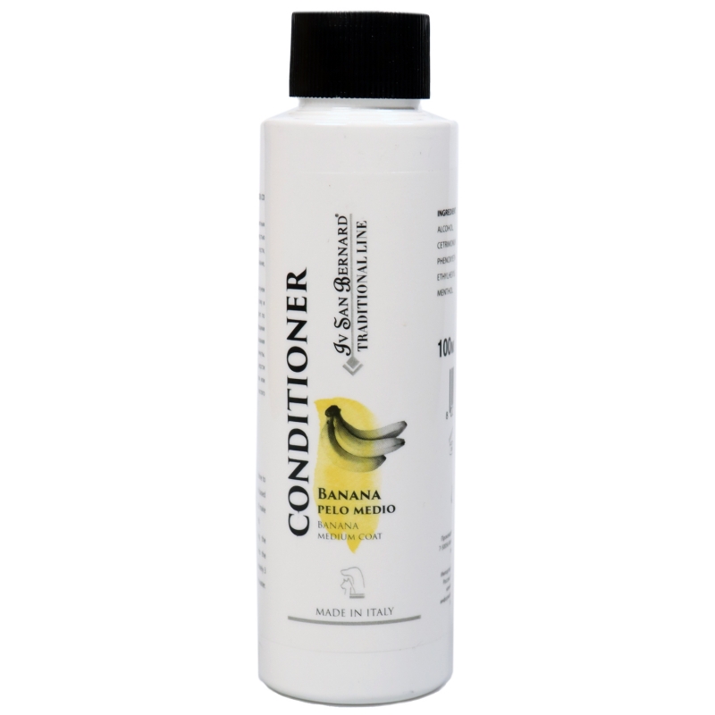 Кондиционер Iv San Bernard Traditional Line Banana для средней шерсти Для животных с шерстью средней длины. Улучшает структуру шерсти, увлажняет, питает, облегчает расчесывание, способствует объему. Способ применения: после применения шампуня, на чистую мокрую шерсть нанести достаточное количество кондиционера на шерсть мягкими движениями, оставить на 3 мин. Смыть водой.
