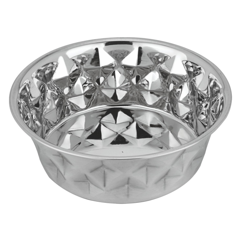 Стильная миска для кормления питомцев из нержавеющей стали. Дизайн миски имитирует огранку драгоценных камней, подчёркивая важность приема пищи для вашего питомца. Удобная эргономичная форма миски наилучшим образом подходит для всех видов корма и воды. Миска устойчива и не переворачивается за счет силиконовой накладки на дне. Прочный и безопасный материал – нержавеющая сталь – надолго сохранят свежесть воды и корма. Объем – 1,9 л Преимущества аксессуаров из нержавеющей стали: • Долговечность. Нержавеющая сталь – очень прочный и износостойкий материал. • Безопасность. Нержавеющая сталь совершенно безопасна для животного. Даже при длительной эксплуатации материал не выделяет в воду и пищу вредоносных веществ. • Гигиеничность. Нержавеющая сталь не царапается и не трескается, а значит, в местах повреждений не будут скапливаться бактерии. • Отсутствие запаха. Нержавеющая сталь не имеет запаха и не влияет на вкус воды или пищи.