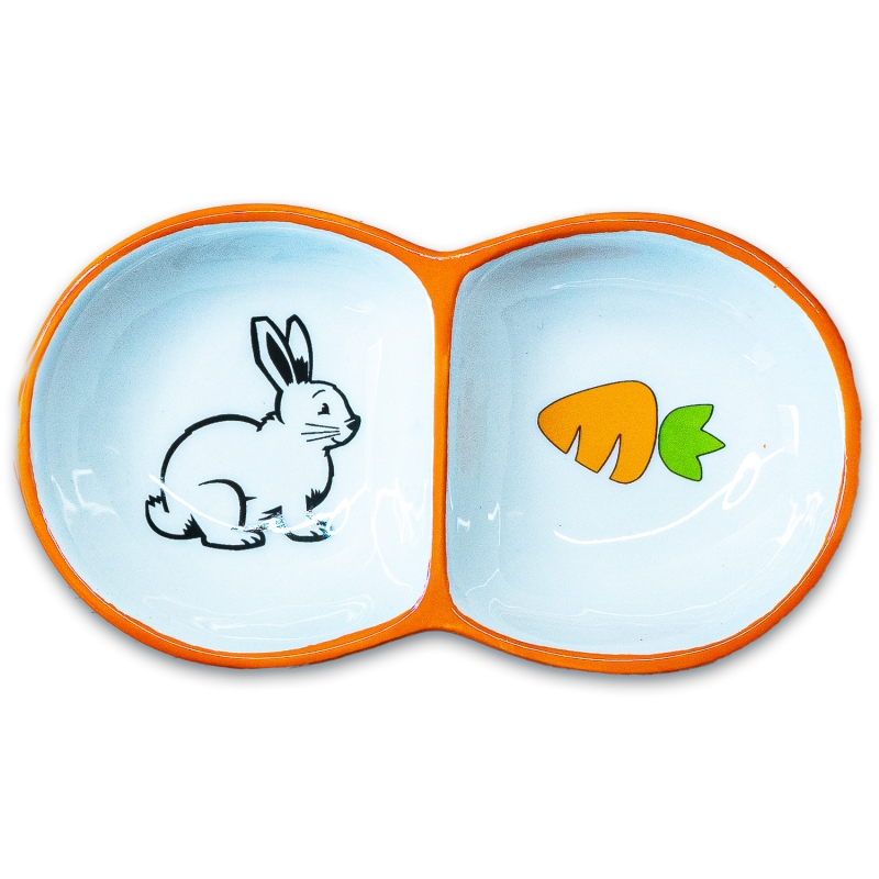 Двойная керамическая миска для грызунов, кролик и морковка. →Яркий дизайн подчеркивает индивидуальность владельца. →Выполнена из качественных материалов Объем мисок: 50 мл. Удобно использовать и легко мыть.