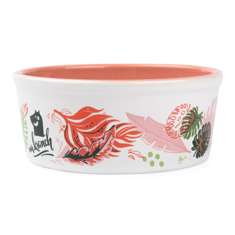 Миска Mr.Kranch для собак и кошек из фарфора "Тропики", 450мл, розовая