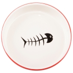 Миска Mr.Kranch керамическая для кошек 300 мл красно-белая с рыбками