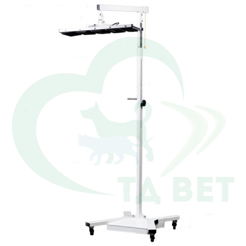 ТД ВЕТ Светильник ветеринарный предназначен для общего освещения рабочего поля при ветеринарных обследованиях, при проведении операций, для диагностики и осмотров, и т.д. Светильник ТД ВЕТ оснащен пятью мощными светодиодными источниками света. Так как источников света не один, а несколько и они распределены в пространстве, в операционном поле от рук хирурга падает не одна темная тень, а несколько светлых ("бестеневой эффект").