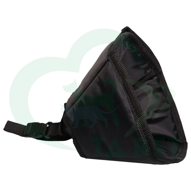 Воротник представляет собой мягкий, с синтепоном, тканевый усеченый конус, со специальными петлями для ошейника для еще большей фиксации.